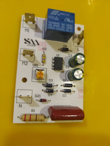 عملکرد: با اتصال ورودی برق،رله متصل میشود و پس از تایم گذار که توسط پتانسیومتر قابل تنظیم است رله خاموش میشود،چون رله دو کنتاکت هست میتوان از هر یک از کنتاکتها جهت اتصال به دو موتور استفاده کرد